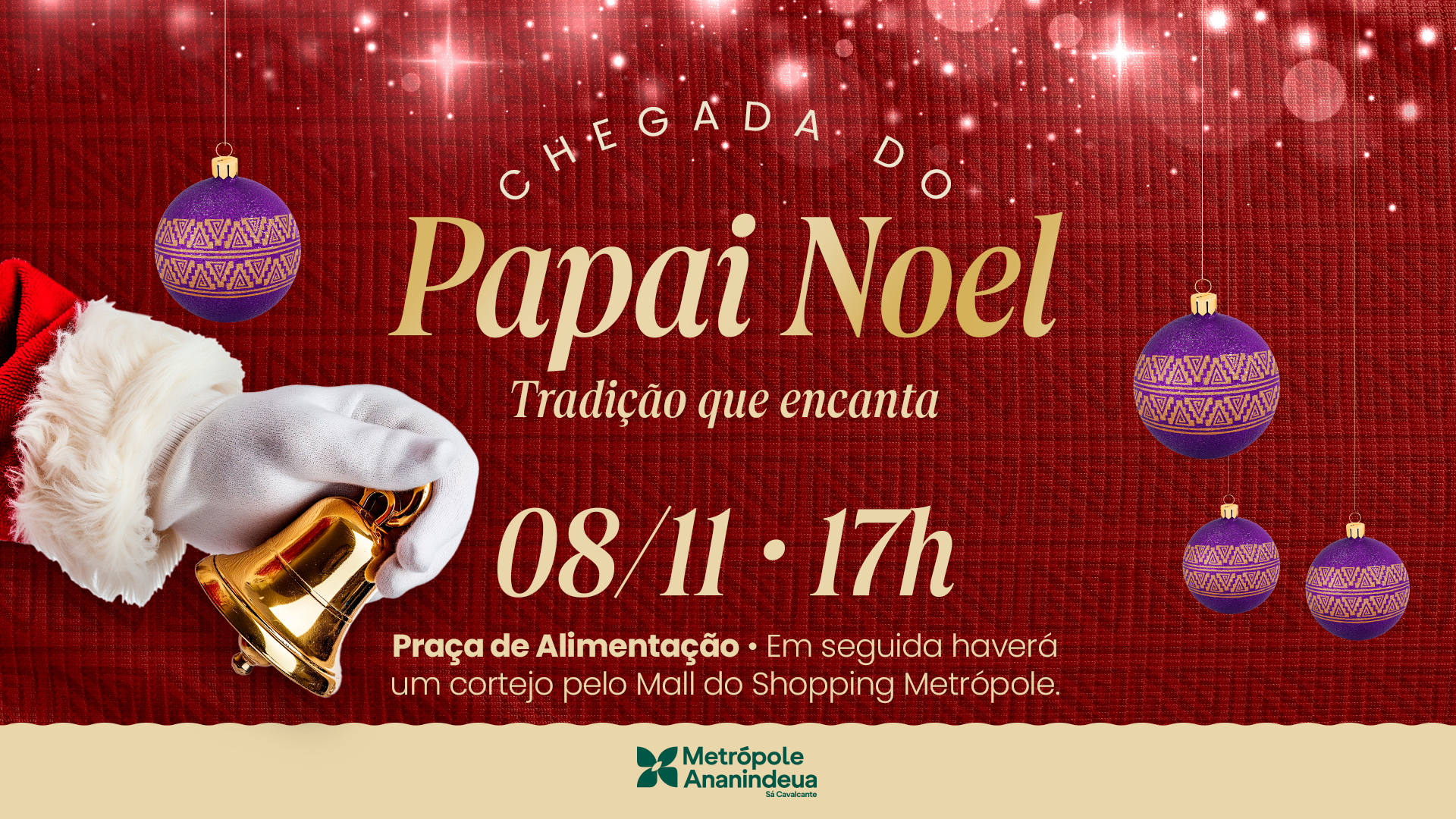 Prepare-se para um momento mágico! O Natal chega ao shopping Metrópole Ananindeua com um grande espetáculo cheio de encanto e emoção. Teremos personagens natalinos, muita música, diversão e um cortejo especial que vai percorrer o shopping, começando na Praça de Alimentação, com um show musical e seguindo até a nossa decoração de Natal, com um cortejo de natal junto com o Papai Noel.
